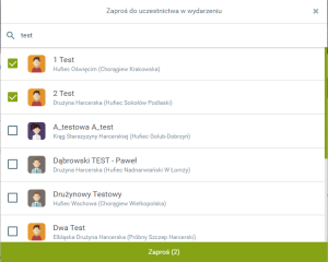 • Dodaj osoby - dzięki tej opcji dodane osoby zostaną automatycznie uczestnikami wydarzenia. Może się to przydać np. przy biwaku drużyny.