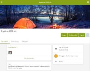 • Zaproś - zaproszone osoby dostaną informację o istnieniu wydarzenia i będą mogły podjąć decyzję o chęci dołączenia. Może się to przydać np. przy kursach w hufcu.