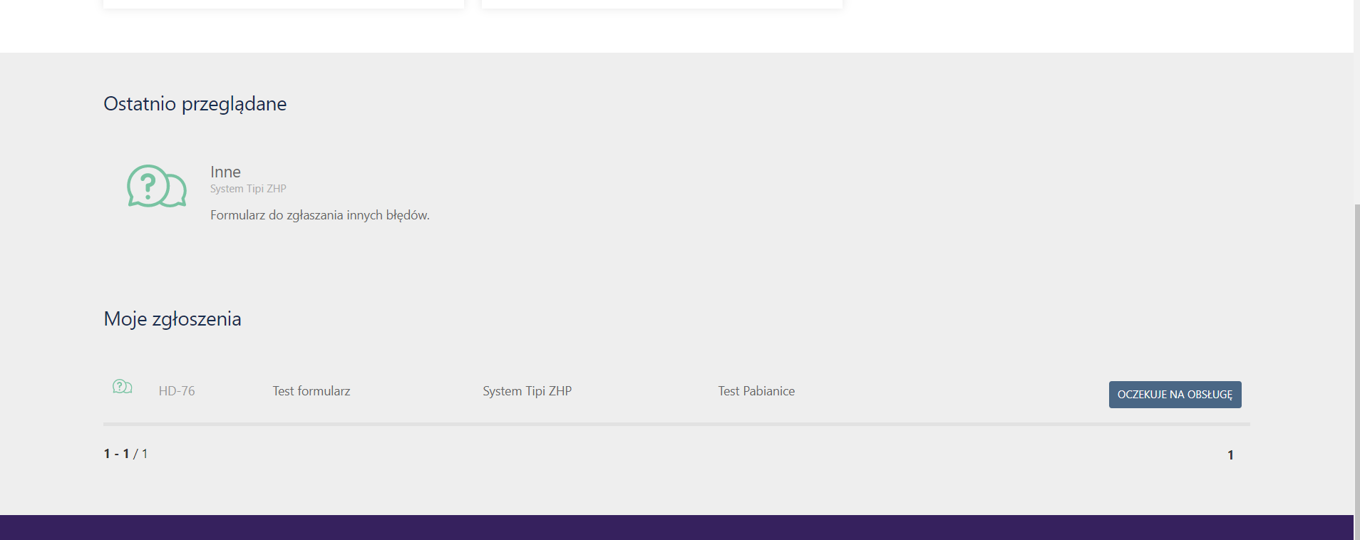 W drugiej części strony znajdziemy sekcję Ostatnio przeglądane, gdzie system będzie podpowiadał nam listę formularzy, z których niedawno korzystaliśmy. Poniżej znajduje się lista wszystkich naszych zgłoszeń z informacją o ich statusie.