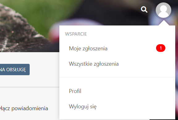 Aby dostać się do swoich zgłoszeń w dowolnym momencie, może kliknąć na ikonę w prawym górnym rogu, przy której wyświetla się liczba Twoich zgłoszeń i wybrać opcję Moje zgłoszenia.