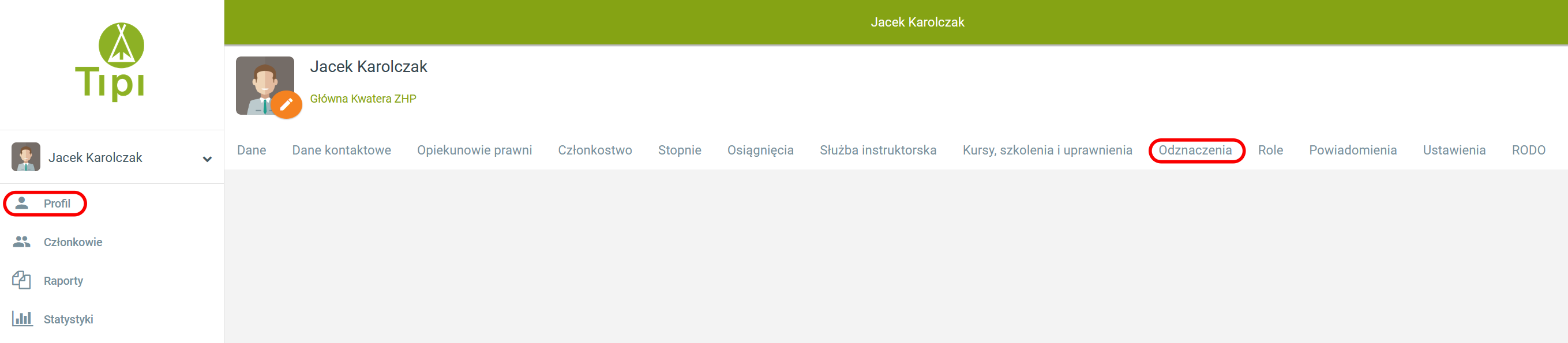 Aby Twoje odznaczenia zostały uzupełnione, skontaktuj się z administratorem hufcowym i jeżeli masz taką możliwość od razu podaj mu wszystkie potrzebne informacje: np. rodzaj odznaczenia i datę przyznania oraz dodatkowo możesz poinformować o osobie przyznającej, podać nr rozkazu i nr odznaczenia.