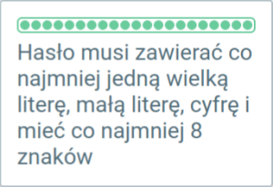 Przy wyborze hasła asystent pokaże jego moc (im więcej kresek tym większa moc hasła) oraz podpowie konstrukcję zapisu: