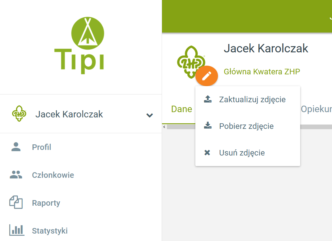 Administratorzy systemu (w tym drużynowi) mają możliwość usunięcia zdjęć członków swoich jednostek.