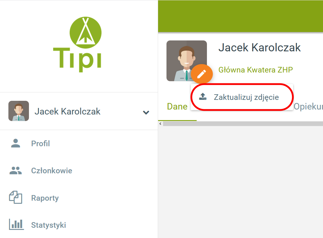 Wszyscy użytkownicy mają możliwość spersonalizowania swojego profilu między innymi poprzez dodania zdjęcia do swojego Profilu w zakładce Dane.