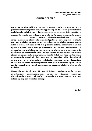 Oświadczenie, w którym weryfikowane jest obywatelstwo oraz zamieszkiwanie na terenie krajów innych niż Polska w ciągu ostatnich 20 lat oraz zbierane są dane do sprawdzenia w Rejestrze Sprawców Przestępstw na Tle Seksualnym: